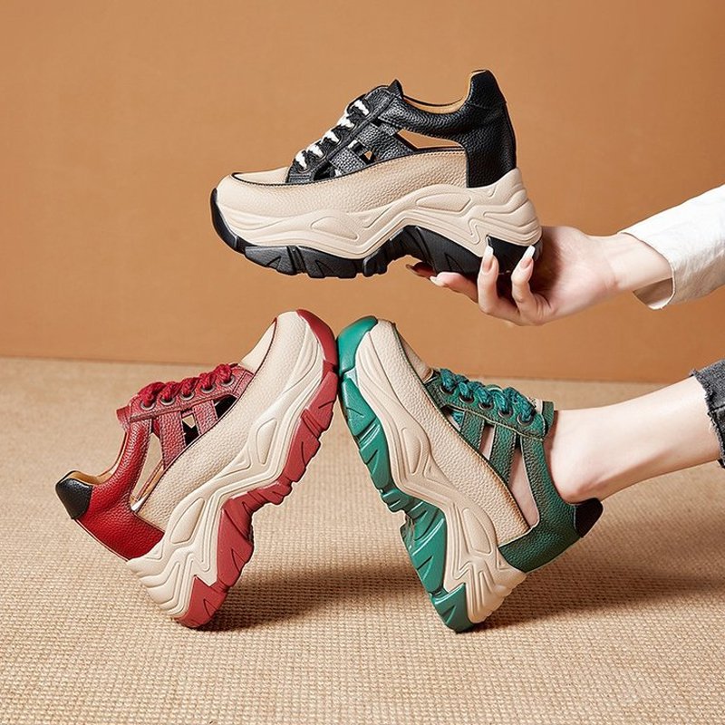 アメリアのレザーアッパー厚底トレンドランニングシューズ(男女兼用)
