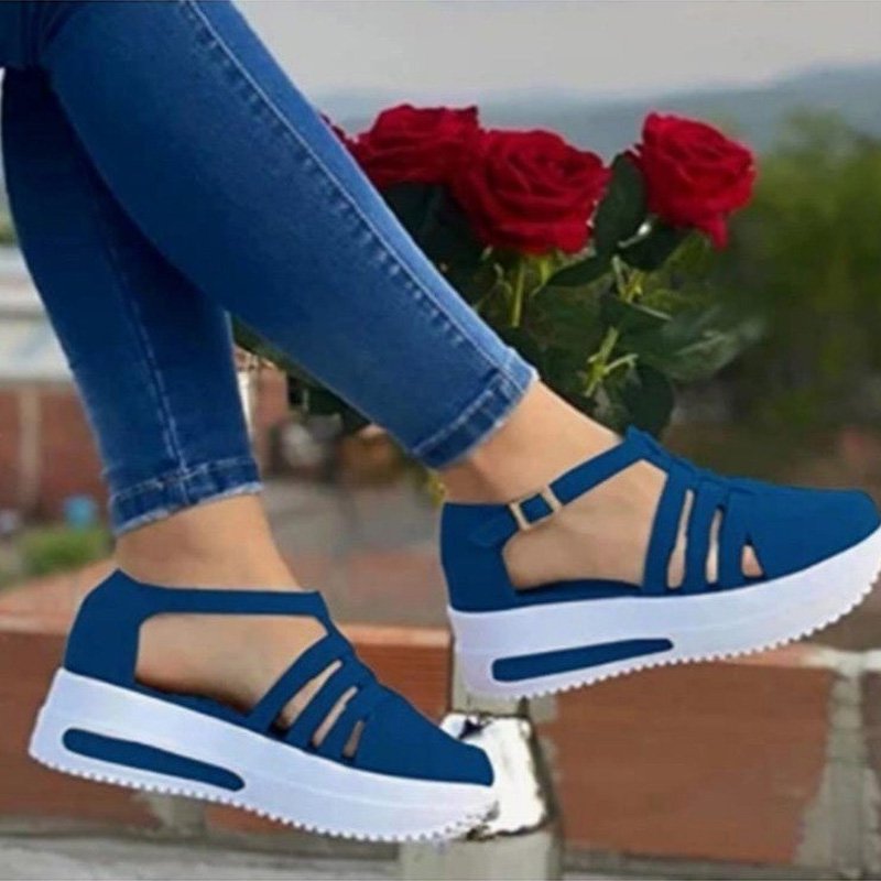 キラキラ牛革厚底透かし彫りサンダル