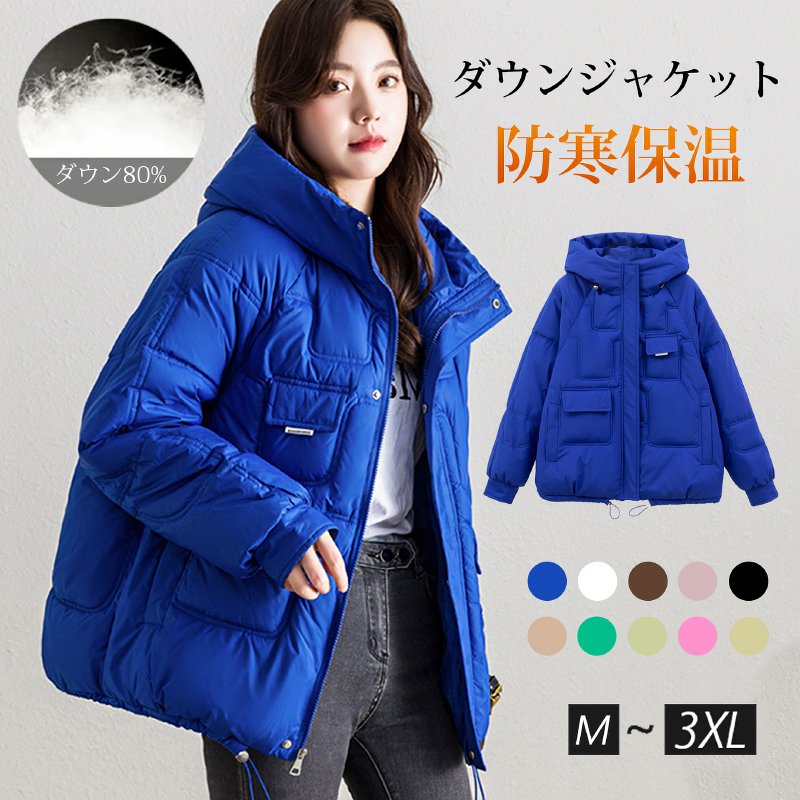 レディースショート丈フード付きダウンジャケット